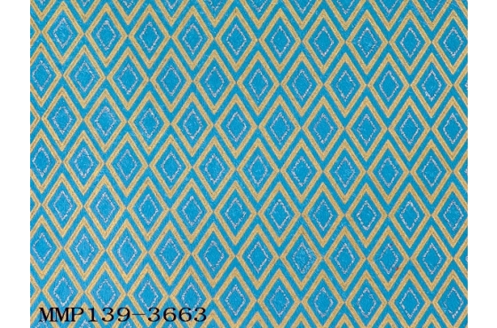 | 電子絲絨布背銀印菱形格中格-土耳其藍底+銀蔥+金膜 |